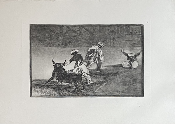 • FRANCISCO DE GOYA - Heliogravura. No.04 do álbum "Tauromachie" Ed. HenrichPallmann. Munique, Delphin-Verlag. Edição de 1911. MI: 20,5 x 33cm. ME: 36 x50cm. Edição impressa em 400 cópias. Ex-coleção Mônica Filgueiras. Sem ass. esem moldura.