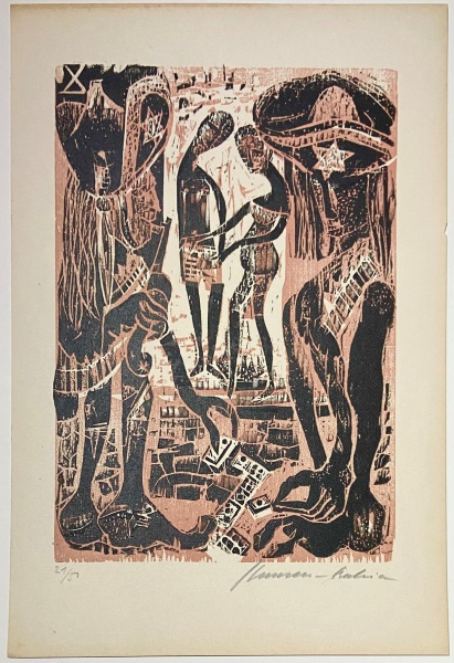 • HANSEN BAHIA - Xilogravura nº . Do álbum "Via Crucis do Pelourinho", que teve texto original de Jorge Amado. Ed.21/50. 1967. ME: 47 x 28,5cm. Ass. inf. dir. Impresso pelo próprio artista. Sem moldura.