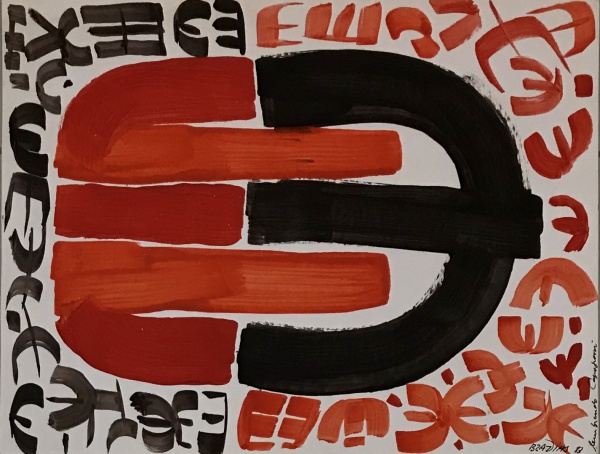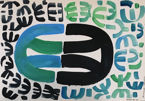 • BRAZ DIAS - "Lembrando Capogrossi". Guache sobre papel. 1983. ME: 27 x 35cm. Ass. inf. dir. Sem moldura.