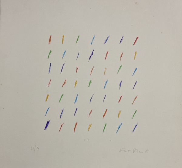 • ANTONIO PETICOV -  "N.7". Litografia. 1988. ME: 38 x 38cm. Ed. xx/99. Ass. inf. dir. Sem moldura. Apresenta alguns pontos de oxidação no papel.